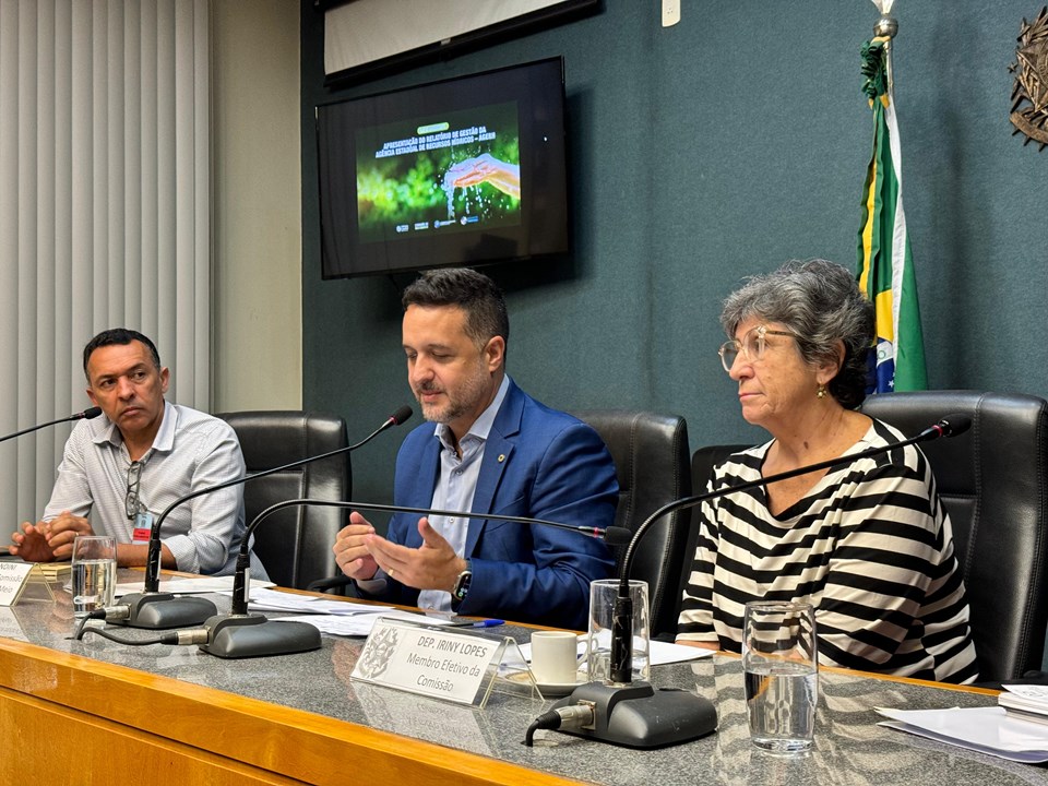Durante a reunião ordinária da Comissão de Meio Ambiente da Ales, o diretor técnico da Agerh, José Roberto Jorge, e a coordenadora do Programa no Estado, Gizella Igreja, apresentaram o relatório de execução do 3º ciclo do Progestão, da Agência Nacional de Águas e Saneamento Básico (ANA).