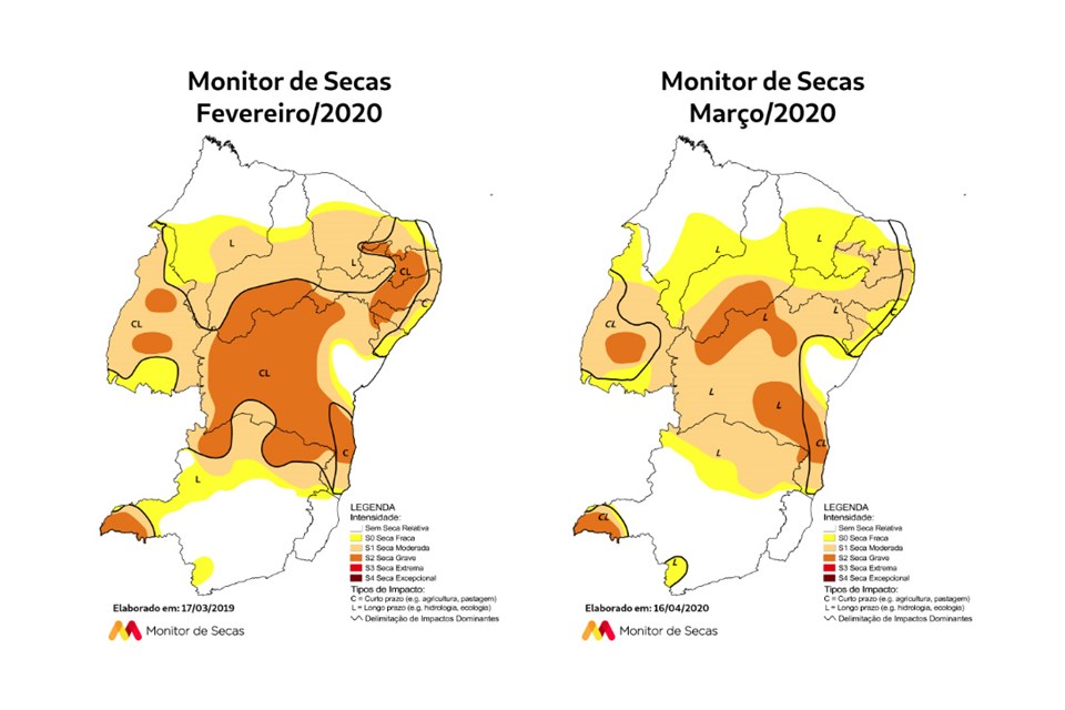 Também houve a redução da gravidade das secas que acontecem em Alagoas, Bahia, Ceará, Maranhão, Minas Gerais, Paraíba, Pernambuco, Piauí, Rio Grande do Norte, Sergipe e Tocantins. Em março deste ano aconteceram chuvas acima da média no Nordeste, com acumulados superiores a 100mm em relação à média em grande parte dos estados nordestinos. No Espírito Santo, Minas Gerais e Tocantins, as chuvas variaram de normal a um pouco acima da média histórica para o mês.